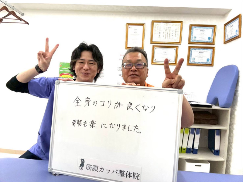 Q、あなたと同じような症状でお悩みの皆様へメッセージがありましたら教えてください。 A、10年近く悩んだ痛みが簡単に改善しつつあります。最初は半信半疑でしたが、カッパ整体院は本物です!